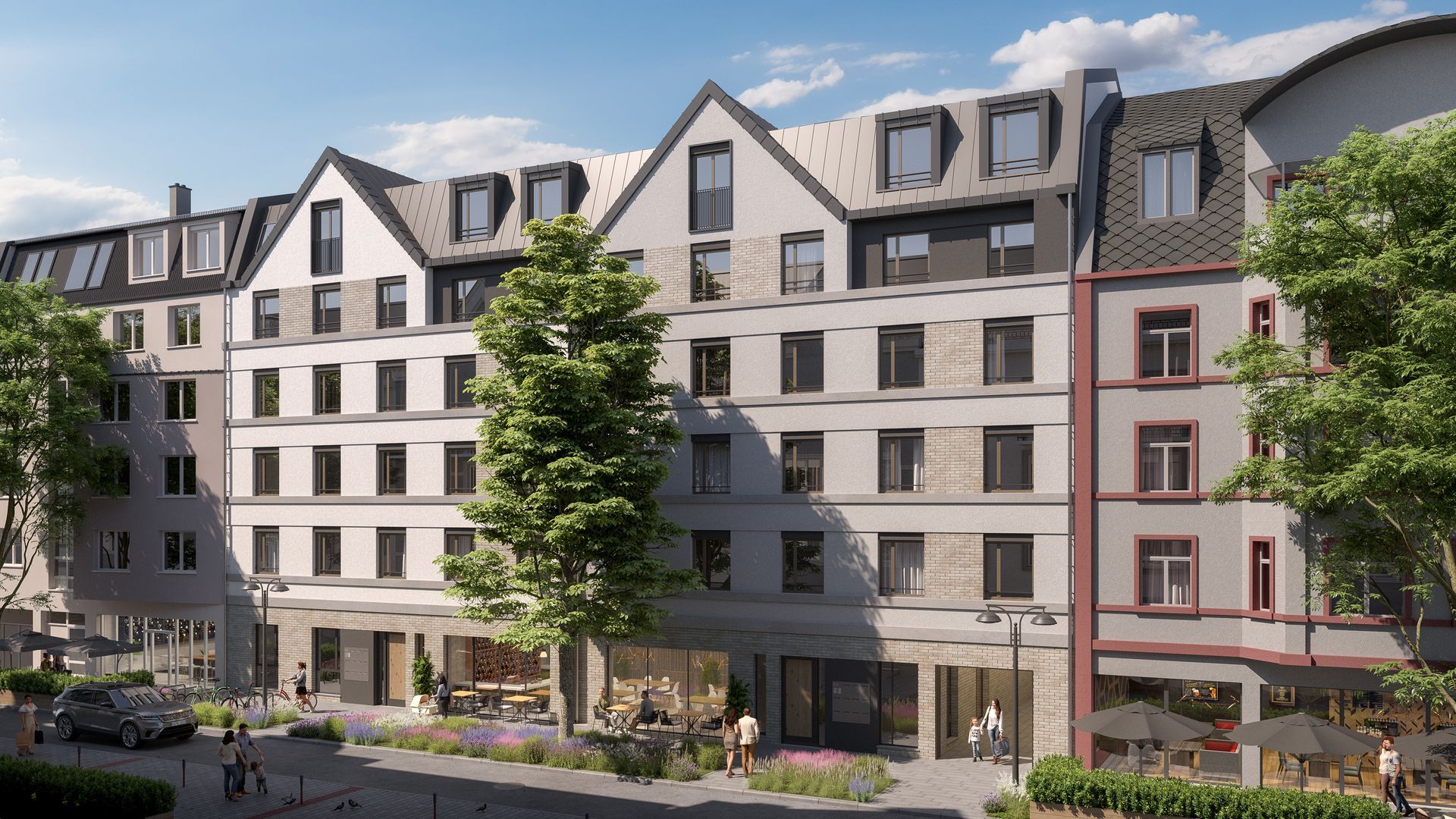 Inmitten des beliebten und quirligen Stadtteils Bornheim entsteht eine Mischung aus Kindertagesstätte, Einzelhandel, Tiefgarage und fünf Gebäuden mit 67 Wohnungen. Von den 67 Wohneinheiten, sind 28 als sozial gefördert (der betreffende Antrag wird derzeit von Seiten der Stadt geprüft) errichtet worden. 39 Einheiten werden zur freien Finanzierung angeboten. Dank seiner zentralen Lage im Frankfurter Norden mit vielen Geschäften, Cafés, Restaurants und Freizeiteinrichtungen sowie den hervorragenden Anschlüssen zu den öffentlichen Verkehrsmitteln gehört das künftige Quartier schon heute zu den meistgefragten in der Mainmetropole.